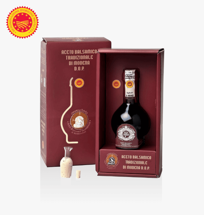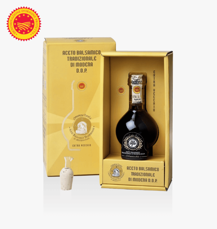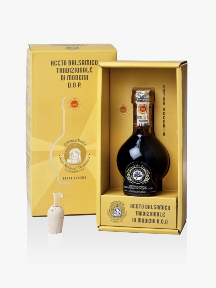モデナの伝統的なバルサミコ酢「エクストラヴェッキオ」は、最高品質のバルサミコ酢です。7種の樽で25年以上熟成されます。